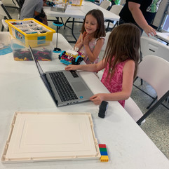 Once campers mastered programming their robots to drive forwards, backwards, left, right, we introduced another challenge. We brought out an old FIRST LEGO® League season challenge called Cargo Connect where campers could pick which missions they wanted to attempt. Some of the camper's favorite missions to do were to move the crane, unload the cargo plane, and to knock the blue crate off the mat to be able to do the puzzle! Campers spent the rest of their week working on these challenges and building attachments to help them complete those missions.